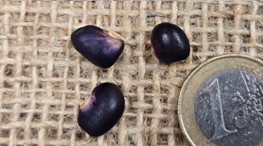 Die Bohnenkerne sind weinrot und mit orangefarbenen Sprenkeln durchzogen, die über die gesamte Bohne verteilt sind. Diese Bohnen sind vielseitig, da sie sowohl reif als auch halbreif genossen werden können – entweder wenn das Korn bereits ausgebildet, aber noch zart und weich ist.